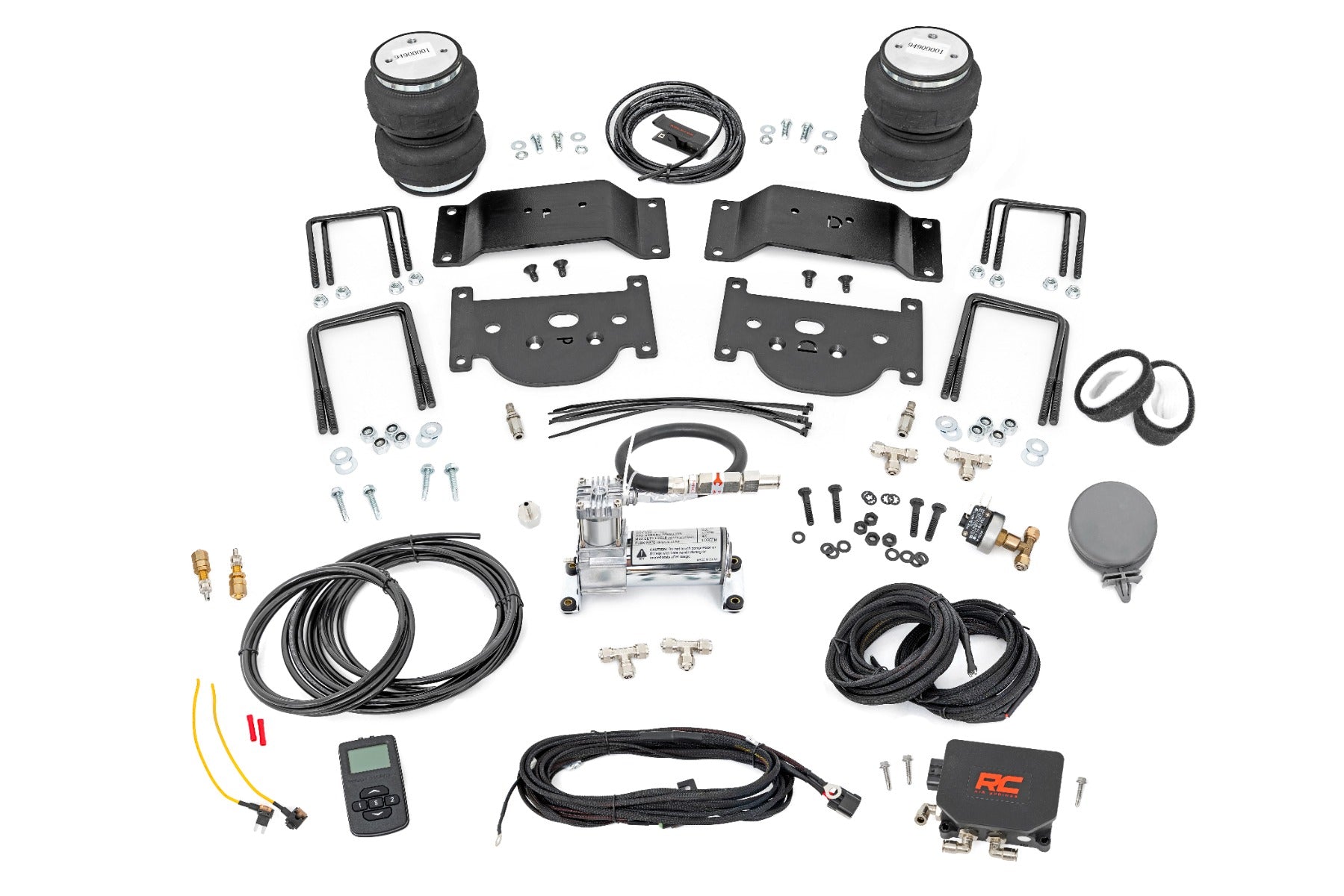 Ideal Leveling. Is your truck your workhorse? The main attraction to the pick-up line is the accessibility to haul and tow as desired. However, due to the amount of weight in the bed, or the condition of the vehicle's rear leaf springs, this can cause the vehicle to be un-level when under load. Here at Rough Country, we created an innovative new product to ensure that these are troubles of the past. Introducing, Rough Country's Rear Air Spring Kit.Heavy-duty Construction. Rough Country's Rear Air Spring Kit features two RC branded high-quality double convoluted airbags complemented with DOT-approved airlines. Whether you plan on towing or hauling in the not-so-distant future Rough Country's Air Spring kit is the must-have accessory to ensure that your trailer is level reducing the weight off of the tongue of your trailer.a Each kit offers 1/4" push connector fittings and all of the bracketry needed to ensure installation is lightning fast and secure! Rough Country's Air Spring kit provides up to 5,000 lbs of load support to ensure that you experience less sway and bottoming out when braking and steering!a\ Installation. With an estimated timeframe of 1-2 hours this full kit can be installed at home using standard tools and can be completed efficiently and quickly!\ Limited Lifetime Replacement Warranty. Rough Country's Rear Air Spring Kit is backed with a limited lifetime replacement warranty towards manufacturer defects. As such, the product is protected from structural and workmanship damage after the date of purchase. With our industry-leading warranty give yourself peace of mind when using Rough Country's Suspension products!a