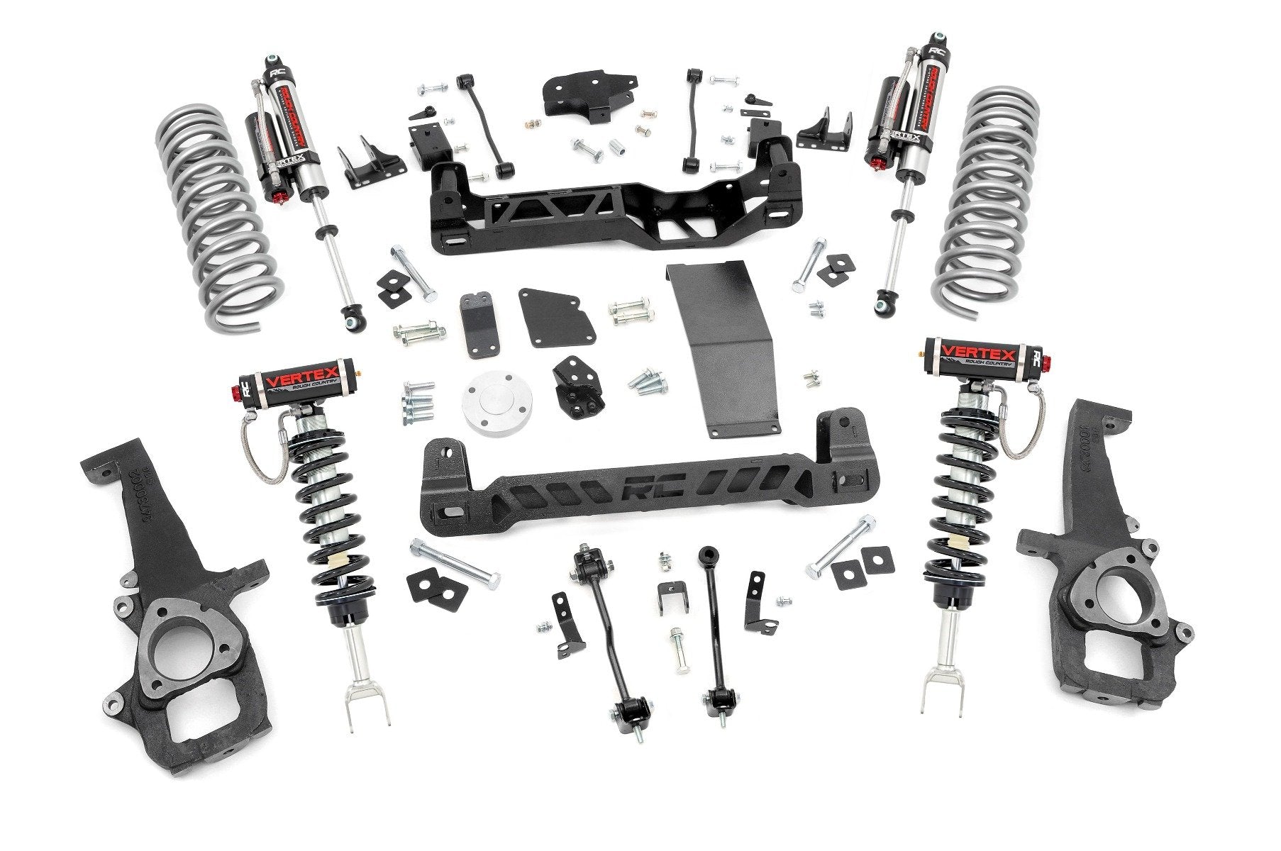 Transform your fourth-generation RAM 1500 with Rough Country's complete 6in Suspension Lift Kit. This all-inclusive system delivers an aggressive, commanding stance that perfectly complements your truck's rugged new design.Preserve Your Smooth Factory Ride: Experience the same comfortable and controlled driving feel you love. Our kit maintains a smooth factory-like ride quality so every journey, on-road or off, is just as comfortable as before.Boost Your Ground Clearance for Ultimate Off-Road Confidence: Gain plenty of added clearance to tackle the toughest trails and obstacles with ease. The 6-inch lift lets you run up to massive 37-inch tires for a bold look and enhanced off-road capability.Achieve a Balanced, Aggressive Stance: Level your RAM's front and rear for a sleek, aggressive profile that turns heads everywhere you go. The kit includes precision-engineered front and rear crossmembers, each laser-cut with the iconic RC logo for a fierce yet streamlined appearance.Optimized Ride Quality with Application-Specific Springs: Enjoy improved handling, ride comfort, and load support thanks to dual-rate rear coil springs (optional upgrade) tailored for your RAM. Whether cruising highways or conquering rocky terrain, this kit adapts seamlessly.Fully Configurable with Premium Shock Options: Customize your ride quality with shock absorbers that match your driving style, from nitrogen-charged N3 shocks for balanced performance to the premium Vertex reservoir shocks for the ultimate ride.Clean Installation with Long-Term Durability: All components are designed with drop brackets and proper geometry to keep your truck looking sharp and functioning flawlessly, no loose parts or unsightly hangers. Backed by Rough Country's Limited Lifetime Replacement Guarantee, this kit is built to last.Upgrade your RAM 1500 with Rough Country's 6in Suspension Lift Kit, dominate the trails, look the part, and drive like a champion every mile of the way.