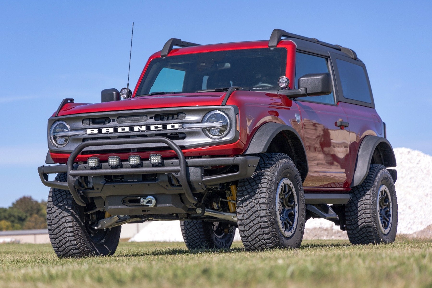 Give your lifted Bronco a stylish and functional upgrade with Rough Country's SRX2 Side Steps! Built with an innovative slotted aluminum rail system, these side steps offer unmatched versatility. Easily adjust the hoop steps by sliding the footpad left or right along the rail until it's perfectly positioned for easy entry and exit.Durable and Built to Last: Crafted from durable powder-coated aluminum, these steps are corrosion-resistant and designed to handle the harshest elements. The fabricated steel mounting brackets and black stainless steel zinc-plated hardware add strength and durability while ensuring a clean, sleek look. Molded end caps keep dirt and debris out, maintaining a polished appearance and long-lasting performance.Modern, Modular Design: The SRX2 Side Steps feature a modular construction, allowing you to configure and customize them to fit your style. Not only do they enhance functionality, but they also clean up your Bronco's profile by covering the unsightly body pinch-weld and frame.Easy Installation: Installing these adjustable side steps is quick and hassle-free. With an estimated 1-2 hour install time, you'll be back on the road in no time. Simply bolt them on and adjust the step positioning to fit your needs.Warranty You Can Count On: Rough Country's SRX2 Aluminum Steps come with a limited lifetime replacement warranty. Drive with confidence knowing your steps are protected against structural and workmanship defects for the life of the product.