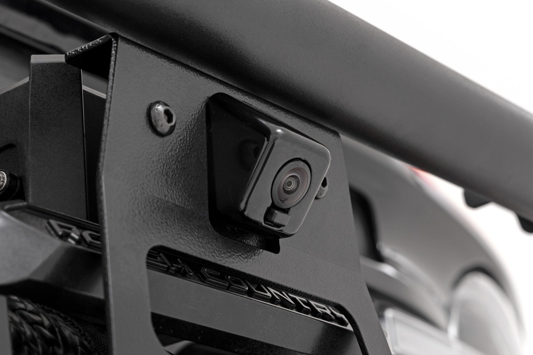 Don't let a winch installation rob you of your Ford Bronco's camera functionality -- Rough Country's Front Camera Relocation Bracket has you covered! Our bracket relocates your camera from the grille to the winch fairlead, ensuring clear visibility during all your adventures. Crafted from robust 11-gauge material and custom-bent to perfectly fit our high mount kit with safari bar, this bracket is built to last. The camera clamp bracket, made from durable 14-gauge material, adds extra strength. With a sleek, flat black powder coat finish, it not only performs but looks great too. And here's the bonus - you can keep an eye on your winch cable entering the winch drum. Take your Bronco to the next level with Rough Country's Front Camera Relocation Bracket!