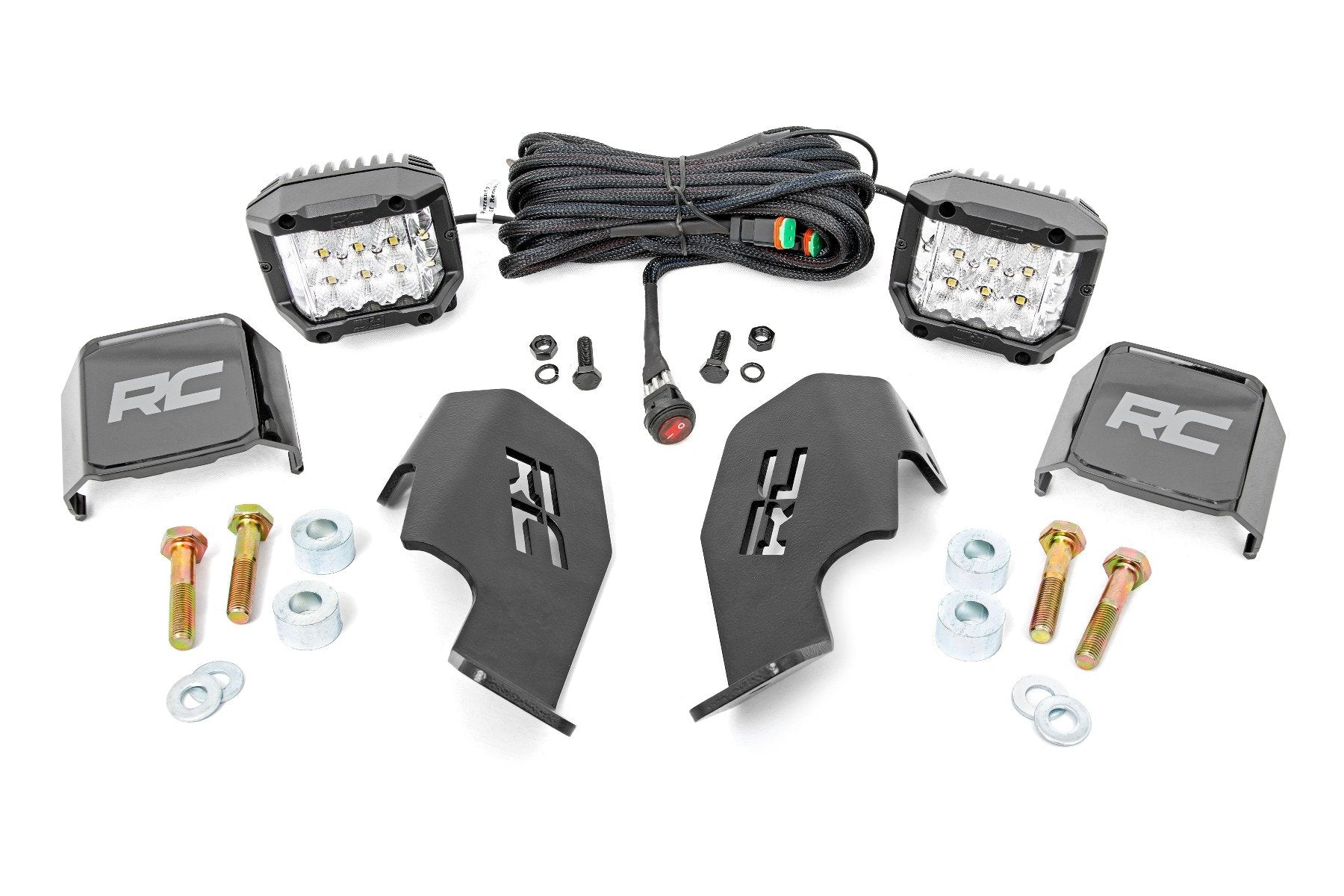 Go the extra mile in your UTV, no matter the lighting conditions with Rough Country's Honda Talon Cube Lights. This LED cube light kit can be set up and easily adjusted to match your needs in darkness and low visibility.\ Rough Country's LED kit is easy to install, it features a 100% bolt on installation process that mounts to the bottom of the roll cage for a quick and painless upgrade. There are several LED options to choose from, the standard 2-inch black-series LEDs withor without daytime running light function, or, our popular 3-inch Wide Angle Osram LED cube.\ Rough Country LED light cubes are IP67 Waterproof and includes a premium, braided wiring harness with in-line fuse and on/off switch. Each mount features a positionable base that lets you choose the exact angle you prefer for illumination when you need it most. Get the look and function for your UTV where it counts, on and off the trail.