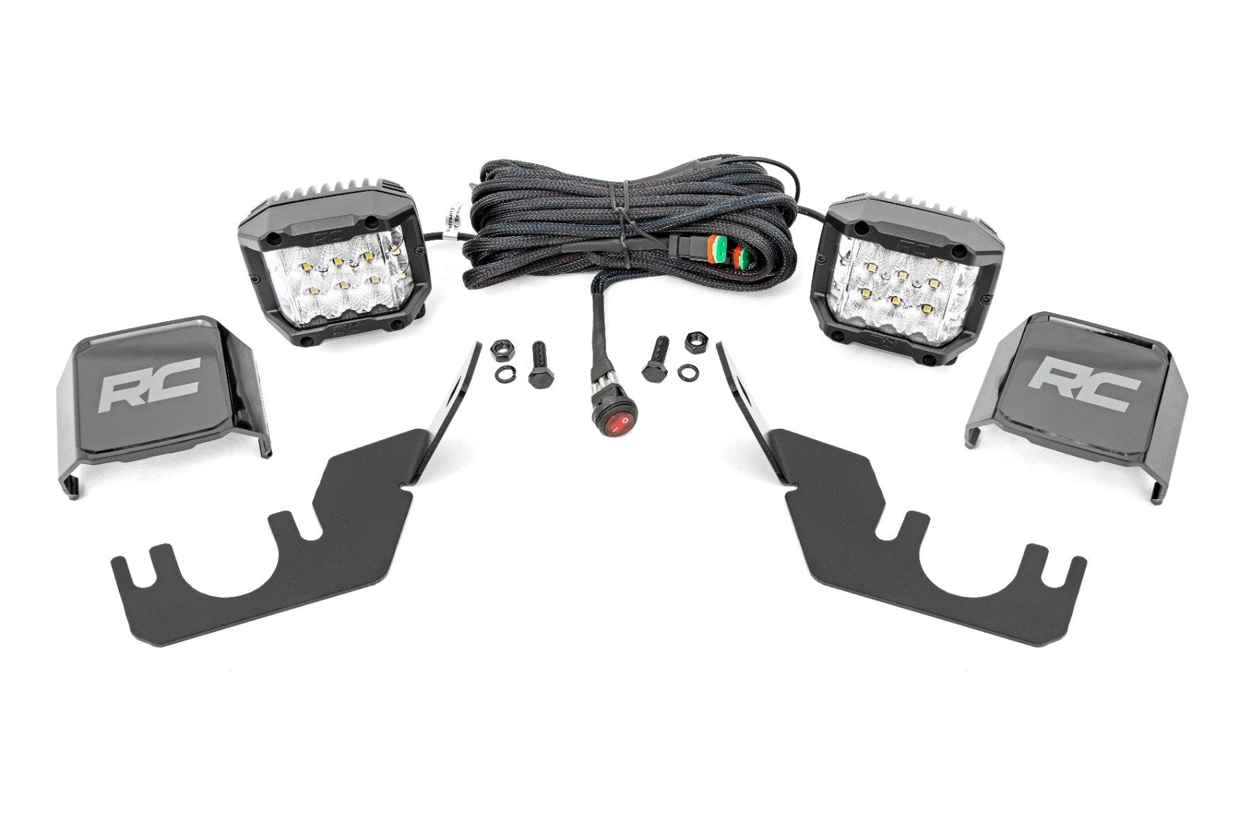 COMMAND THE DARK with Rough Country's Rear-Facing Cube LED Kit for Kawasaki Teryx models. This handy solution includes everything you need to upgrade your Teryx with a set of 2-inch or 3-inch LED light cubes at the back of the cage for outstanding illumination.\ Whether you're off the beaten path at sunset or gathering all your gear before dawn, you'll be glad to have access to additional lighting power to tackle the task at hand. With up to 13,500 lumens and 140 watts of high-intensity CREE LED output, you're sure to have plenty of LED power. Take your pick of our black-series 2-inch LED Cube or our 3-inch Wide Angle LED Cube!\ These all-weather lights feature a durable, IP67 Waterproof, die-cast aluminum housing and include a premium wiring harness with toggle switch and in-line fuse. Best of all, this easy-to-install kit features a 100% bolt-on installation procedure allowing you to upgrade your Defender quickly and easily! Don't miss this opportunity to upgrade your UTV with one of the best Kawasaki Teryx Accessories available!
