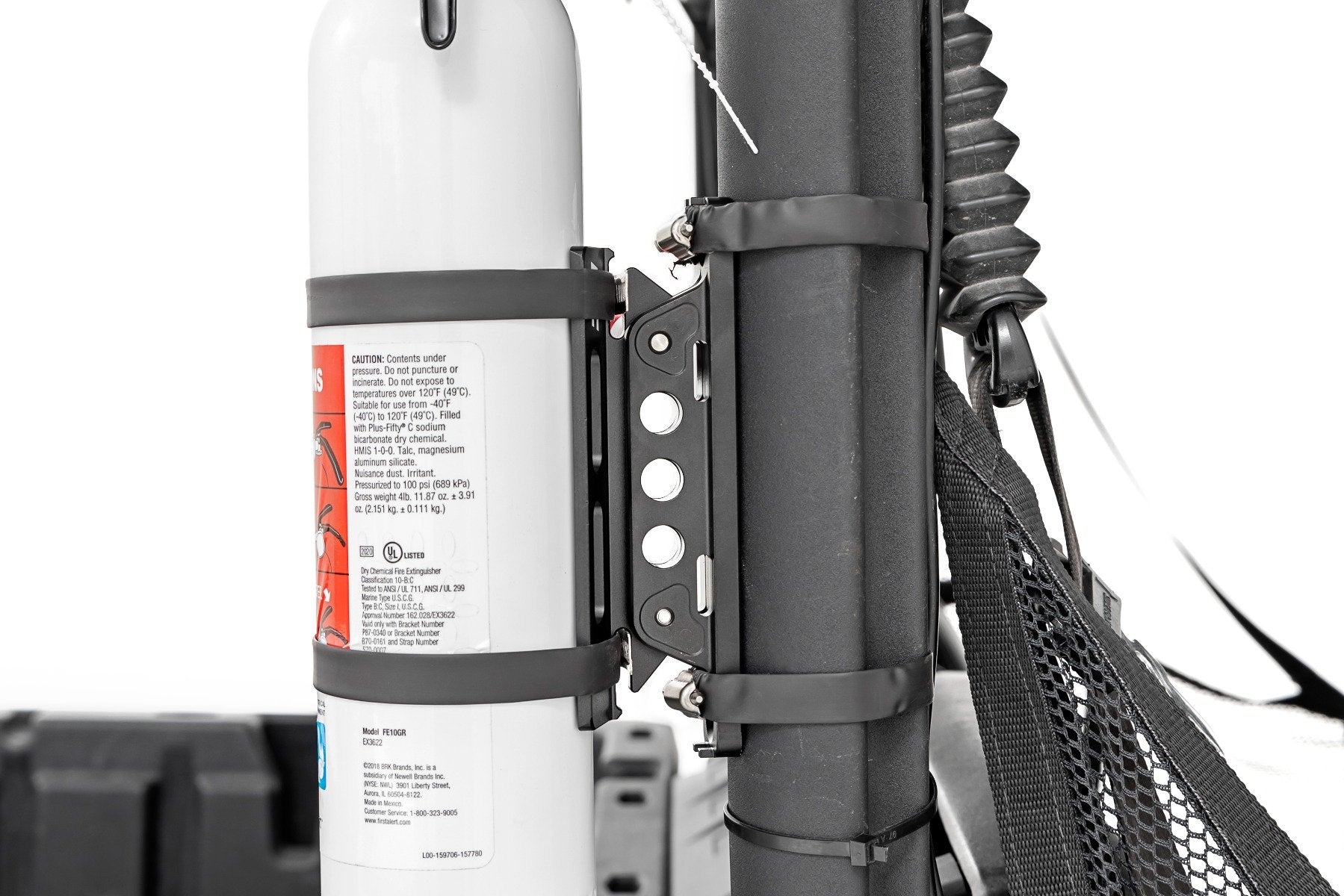 Stay prepared on your next camping experience with Rough Country's Universal Fire Extinguisher Mount. This innovative solution allows you to quickly and easily secure a fire extinguisher to the roll cage of your UTV.\
