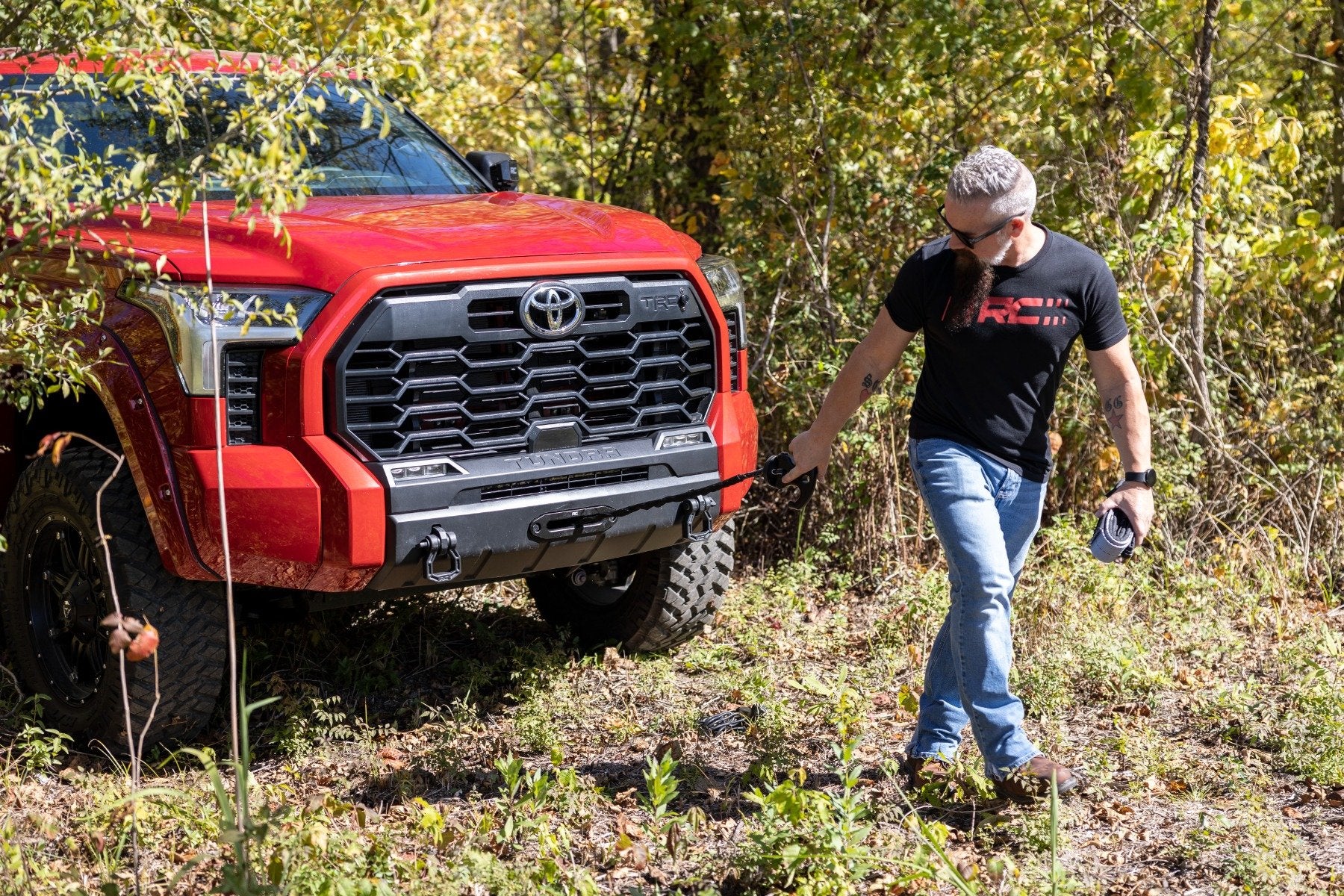 Rugged Construction. Reliable Recovery. When you're getting ready to winch your buddy or yourself out of a sticky situation, the last thing you want to think about is the wear and tear on your winch line. That's why Rough Country's Tree Saver Strap is a must-have recovery accessory. Our strap prevents failure and fraying of the winch line and prevents winch lines from coming into contact with the tree and causing unnecessary damage. With a breaking strength of 16,000 lbs., this 8-foot strap is sure to hold up under pressure.\