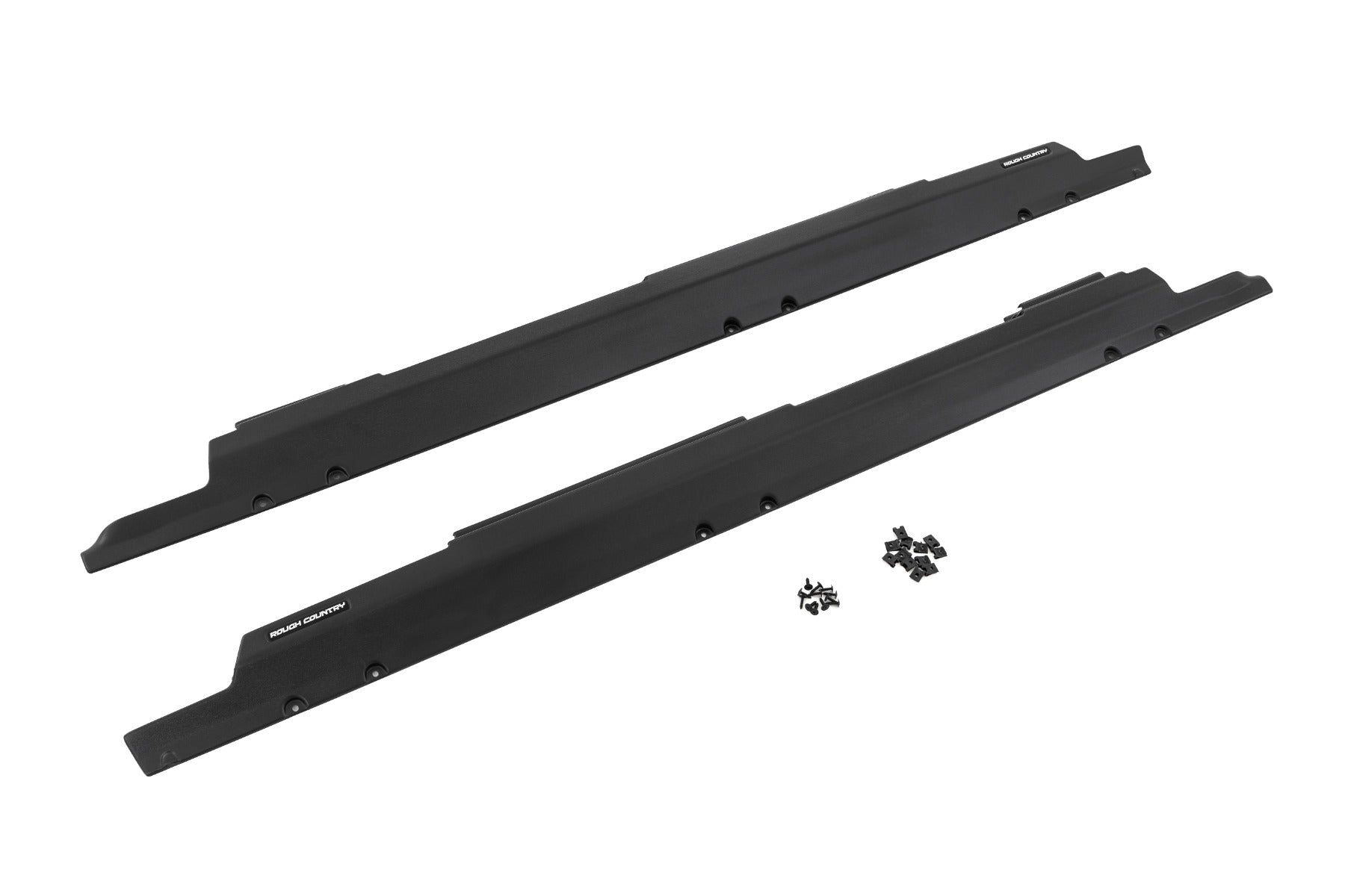 Your Jeep Wrangler JK is made for adventure, but those rocker panels can take a hit on the trail. Rough Country's Rocker Sill Plates step up to protect your JK, keeping your ride looking sharp and ready for more, no matter how hard you play.Protection and Style: Shields your rocker area from chips, dents, and scratches while covering up those unsightly pinch welds and rust, keeping your Jeep looking sharp and trail-ready.Durable High-Density Thermoplastic: These sill plates are built tough from high-density thermoplastic, so they can handle all the rough stuff while keeping your rocker panels pristine. Plus, with UV-resistant material, they won't fade or turn chalky under the sun, keeping your Jeep looking fresh for the long haul.Easy Installation and Removal: These plates snap into place with clips and 3M automotive adhesive, making installation quick and easy, so you can get back to wheeling. Want to go back to stock? No problem'they can be removed just as quickly.3-Year Limited Warranty: Because we know these plates are as tough as your Jeep, we've backed them with a 3-year limited warranty.Rough Country's Rocker Sill Plates offer rugged protection, easy installation, and a sharp look to keep your Jeep Wrangler JK trail-ready. Built to last and backed by a 3-year warranty, they'll help you tackle the roughest trails while keeping your ride looking great.